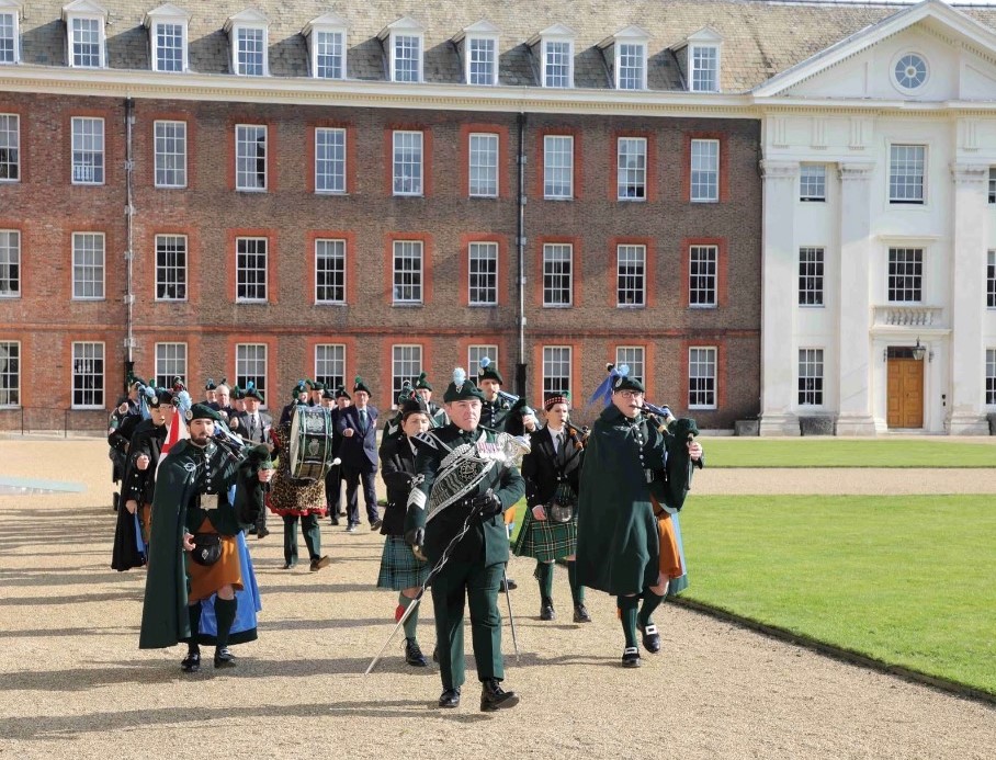 Our first parade of the year proved to be a most successful and extremely enjoyable one to mark St Patrick’s Sunday that took place at the Royal Hospital Chelsea. The weather certainly played his part and there was an excellent turn out of Association Members, who witnessed an outstanding performance by our Pipes and Drums, which was followed by a moving chapel service and then it was back to the Pensioners’ Bar for some refreshments, both Irish Stew and a few samples of the Black Stuff….