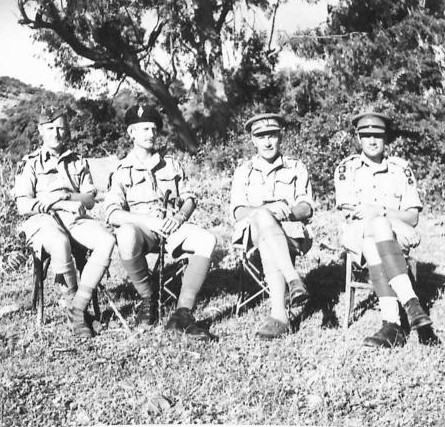 (NA 3374): Left to right:- Lieut. Col. B.H. Butler Colonel T.P.D. Scott, Brigadier N. Russell and Lieut. Col. T.N. Grazebrook.