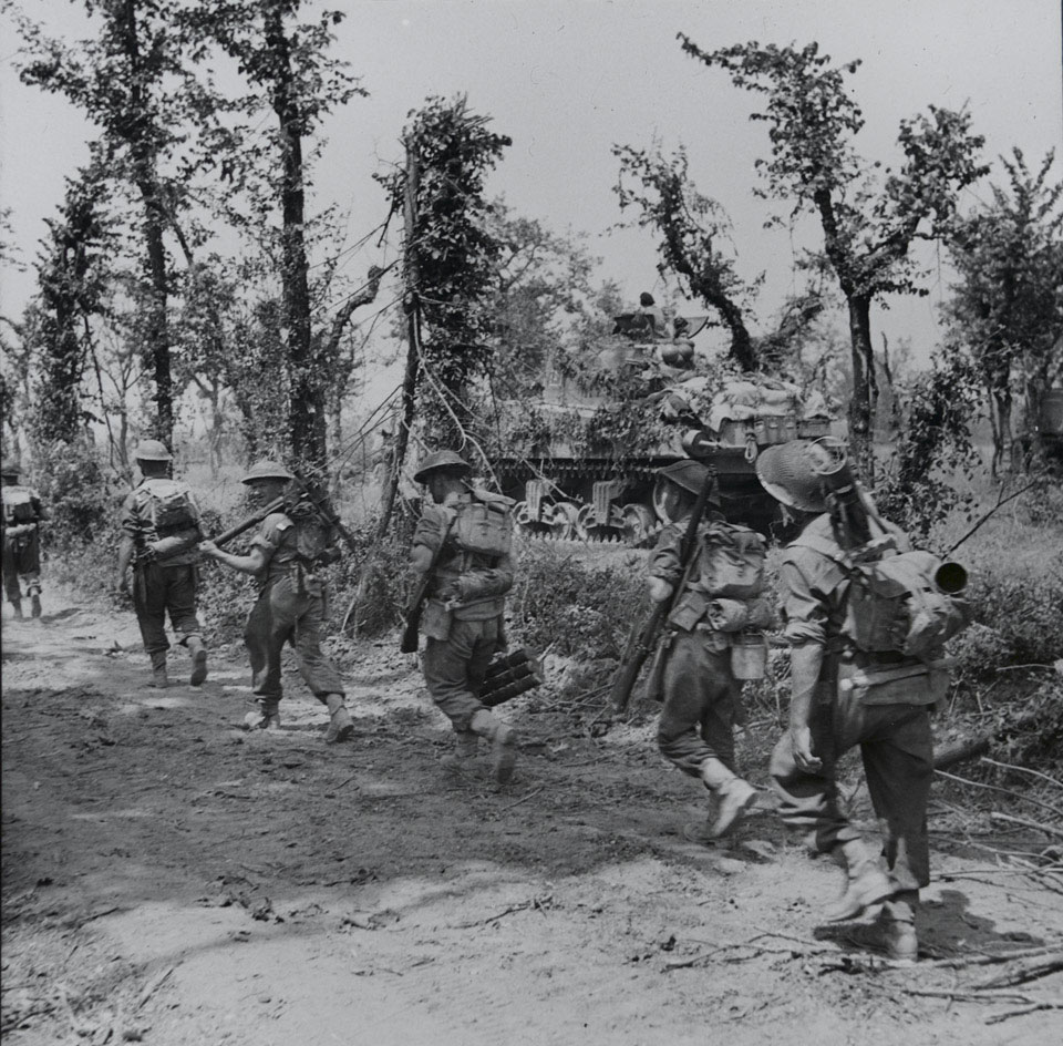 Returning to Italy in February 1944, he became second in command of the 2nd Battalion, London Irish Rifles (2 LIR) before assuming command of the battalion on 15th May 1944 following the death of Lieut-Colonel Goff. He continued to command 2 LIR through the rest of the campaign in the Liri Valley and the advance north of Rome to Lake Trasimene before he took over as Commanding Officer (CO) of 1 RIrF during July 1944. He served as CO of the Faughs through the autumn campaign before he was again wounded in Northern Italy during December 1944.