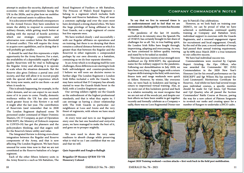 Home » Regimental History » The Emerald – from September 1949 to April 2025 » Issue 76 – 2021