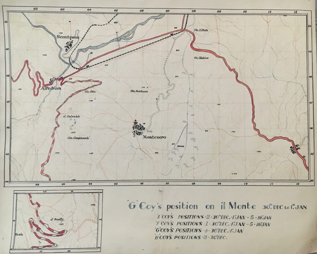 - ‘F’ Company on our right were not attacked but were well held by carefully sited MGs both on Calvario and behind them from their old company locality.