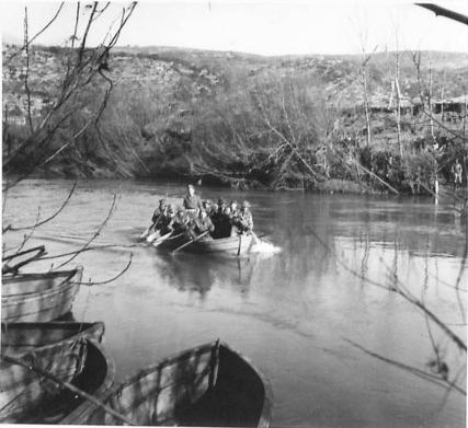 “The 1st Battalion London Irish left Kirkuk on April 1, and after a night in a transit camp at Baghdad they started a nine-day trek in lorries across the Trans-Jordan desert to Palestine. The long convoy passed through the Judean hills, across the Jordan, and thence through central Palestine past Beersheba, with its London Irish dead of the 1914-18 War, to the Suez Canal. Training in combined operations technique was carried out at Kabrit, a small Royal Naval station on the shores of the Little Bitter Lake. The work was hard but morale was high, especially when news came that the 2nd Battalion had acquitted itself very well in its initial battles in Tunisia…”