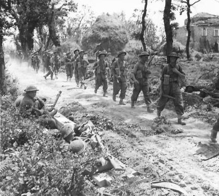 Returning to Italy in February 1944, he became second in command of the 2nd Battalion, London Irish Rifles (2 LIR) before assuming command of the battalion on 15th May 1944 following the death of Lieut-Colonel Goff. He continued to command 2 LIR through the rest of the campaign in the Liri Valley and the advance north of Rome to Lake Trasimene before he took over as Commanding Officer (CO) of 1 RIrF during July 1944. He served as CO of the Faughs through the autumn campaign before he was again wounded in Northern Italy during December 1944.