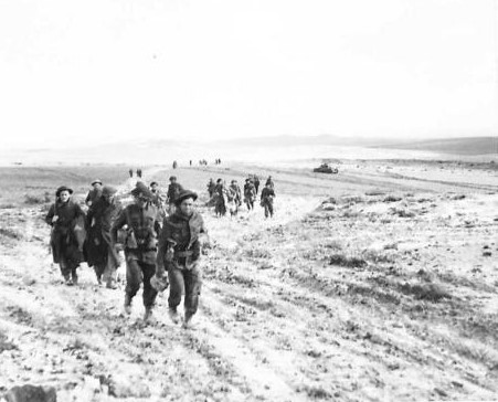 Members of 6 Royal Inniskilling Fusiliers retreat from Two Tree Hill, January 1943.